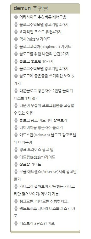 블로그를 하다보면 방문자에게 보여주고 싶은 글이나, 좋은 글들을 보여주는것이 좋습니다. 다음뷰나 베스트에 뽑힌글등은 자체적으로 만들어진 메뉴등으로 보는이에게 깔끔하게 다가가서 좋습니다. 베스트에 뽑힌글이 아니더라도 보여주고 싶은 글이나 또는 링크, 글 보관함 등등 다른 링크를 깔끔하고 역동적인 화면으로 보여지게끔 하는것도 좋지요. 그중에서 단연 Horizontal CSS Menu 나 Vertical CSS Menu 가 돋보입니다. 허나 이것도 IE 라는 무서운 넘을 만나면 어떻게 변할지 모르지요. 또는 이미지를 삽입하거나하면 로딩이 느려지거나 웹 접근성을 해치거나하면 안 다느니만 못한 결과를 낳기도 합니다. 이것 저것 고려해서 저도 한번 달아봤습니다. 이전에 사이드바에 달아놓았던 demun 추천글과 현재..